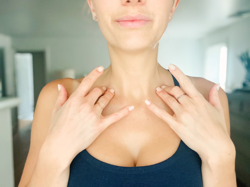 - 쇄골을 부드럽게 쓸어내리기 (10회)